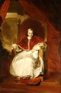 A close examination of the portrait reveals the word PAX on the pope's throne and classical statues from the Vatican collection in the background.