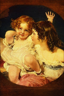 As one of the reviews of the exhibition said, many of us became more than familiar with some Lawrence images because we saw them on biscuit tins and other ads or labels. Or in multiple prints, even paint-by-number sets.This charming view of a thoughtful (or bored) little boy is one of those biscuit tin portraits -- you've seen it a million times, though you can't remember quite where. This is Charles William Lambton, painted in 1825, now in a private collection. Charles was about seven in the portrait and he died just six years later at age thirteen. That gives a distinct poignant twist to this familiar face.
