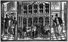 It was then just drizzling newspapers. The great window of that department being thrown open, the first black fringe of a thunder-cloud of newspapers impending over the Post office was discharging itself fitfully—now in large drops, now in little; now in sudden plumps, now stopping altogether. By degrees it began to rain hard; by fast degrees the storm came on harder and harder, until it blew, rained, hailed, snowed, newspapers. A fountain of newspapers played in at the window. Water-spouts of newspapers broke from enormous sacks, and engulphed the men inside. A prodigious main of newspapers, at the Newspaper River Head, seemed to be turned on, threatening destruction to the miserable Post-office. The Post-office was so full already, that the window foamed at the mouth with newspapers. Newspapers flew out like froth, and were tumbled in again by the bystanders. All the boys in London seemed to have gone mad, and to be besieging the Post-office with newspapers. Now and then there was a girl; now and then a woman; now and then a weak old man: but as the minute hand of the clock crept near to six, such a torrent of boys, and such a torrent of newspapers came tumbling in together pell-mell, head over heels, one above another, that the giddy head looking on chiefly wondered why the boys springing over one another's heads, and flying the garter into the Post-office with the enthusiasm of the corps of acrobats at M. Franconi's, didn't post themselves nightly, along with the newspapers, and get delivered all over the world.