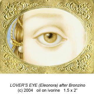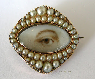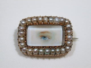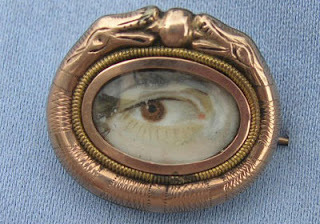 I first became aware of eye miniatures when I sat in on a presentation given by Candice Hern, as a matter of fact. This was some years ago at a Romance Writers of America conference. Candice's very fine website shows the eyes in her collection: