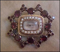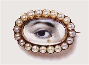 Although the craze for Lover's Eyes – and it was a craze, thanks to the Prince Regent, later King George IV, who was said to have exchanged lovers' eyes with his putative wife, Maria Fitzherbert and perhaps with his lover, Mary Robinson (the actress known as Perdita) – flourished for only a short time, his niece Queen Victoria years later was also said to be fond of them and gave them as gifts. To quote Candice Hern, a fellow writer of historical romance novels, "even though the notion of eye brooches was by that time very old-fashioned."