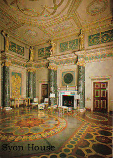 More about the family later. When architect and designer Robert Adam began his work at Syon in 1764, it was still basically a Tudor mansion looking much as it had when first built in 1547, a courtyard house that offered many challenges to bring up to 18th century taste..