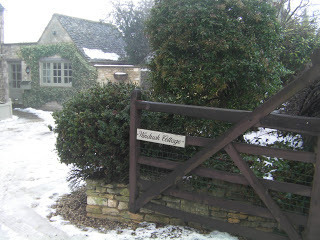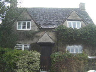 On one of our day trips out of London, Greg and I took a train to Oxford and the Cotswolds on a London Walks tour. The day was cold, the ground was covered in snow and the view from the train was obscured by heavy fog. After arriving in Oxford, we boarded a private coach for the village of Minster Lovell, located to the west of Oxford. The village is approached via a bridge over the River Windrush.