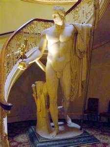 Above is the statue of Napoleon by Canova that was taken as a spoil of war and presented to the Duke of Wellington by George IV. I don't suppose re-gifting was an option then . . . . . .