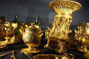Above is only a tiny portion of the gold plate presented to the Duke by grateful nations and on display at Apsley House. Below is the Portuguese Centrepiece, one of the most important examples of Neo-Classical silver ever made, which was always used during the Duke's annual Waterloo Dinners.
