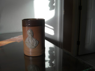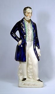 When in London recently, I once again visited Mark Sullivan Antiques in Cecil Court. And once again, Mark told me that I'd just missed seeing the current Duke of Wellington by a few days. Sigh. Mark and I chatted for a bit about Florida and we finally got down to the business of Artie-Facts, also known as Wellington commemoratives or memorabilia. There was nothing on hand that was as earth shattering as the Staffordshire figurine I'd purchased from Mark in June (above), so I was just about to reluctantly pass on buying anything when Mark told me that he had a few pieces in the basement that he'd been saving for a dealer, but seeing as how I was regular customer and the dealer was not, he'd bring them up for me.