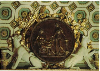 On the first floor, or piano nobile, the main rooms were meant to be impressive, yet welcoming; elaborate, yet comfortable; stunning, yet comprehensible to those who had enjoyed a classical education (as one might expect all who qualified to enter here to have had). The imposing Great Room is used for balls, for dining, or receptions. One can hardly imagine what luminaries of British politics and society graced it. Again, if only walls could speak. What did the Duke whisper to the Countess? And what did the Prime Minister confide to the Prince? And was that the dowager over there, winking at the handsome footman? My, my.