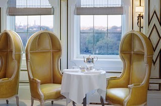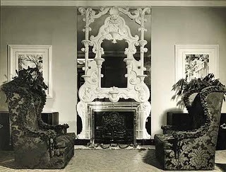 In the 1930's, Dorothy Draper took on a design project at Hampshire House, an apartment building located at Central Park South in New York, where she installed a mix of English and Italian baroque styles throughout, while adding oversized black and white doors, plaster reliefs carved in the ornate style of Grinling Gibbons and, of all things, chairs that look like nothing so much as modified Hall Porter's chairs.