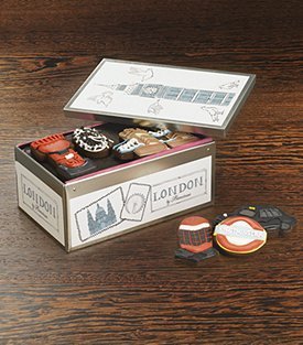 As every girl knows, the perfect handbag is a must, at Christmas or any time. Drop by Harrod's and snap up this padded Union Jack Lips clutch by LuLu Guiness at a price just shy of four hundred pounds. While you're there, pick up this tin filled with biscuits in the shapes of iconic London landmarks.