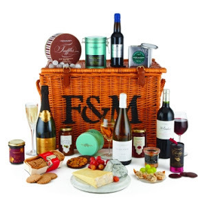 At a cost of close to $500, you or your gift recipient will receive, among other things: Champagne Truffles, PicKadilly Blend Coffee, Gigantissimi Florentines, Regent's Blend Tea, Vintage Champagne, Claret Jelly, Pedro Ximenez Sherry, a bottle of St Emilion, a bottle of Sancerre Blanc, Goose Foie Gras en Gelée, 200g Valencay and Green's Cheddar, all of which is of course presented in a traditional wicker basket.