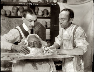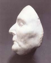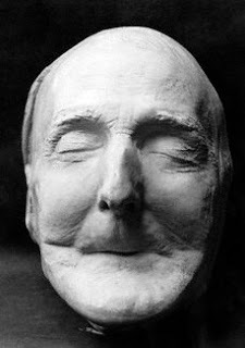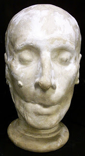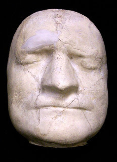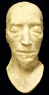 Recently, I came across a book online called The Laurence Hutton Collection of Life and Death Masks: A Pictorial Guide by John Delaney, held in the Manuscripts Division in the Department of Rare Books and Special Collections at Princeton University Library. The making of death masks became popular in the 1800s, but the practice has much older roots. The first masks and effigies made in wax directly from the features of the deceased date from medieval Europe. Personally, I don't get death masks. All of the people from whom death masks were taken were prominent people who had had numerous portraits and busts taken during their lifetimes. Why not remember them thusly, in the prime of their lives, rather than take an image of them in old age - withered, toothless and, more often than not, after having just suffered hours of agony? Perhaps my aversion to death masks is a woman thing. After all, I've yet to come across the death mask of a female.