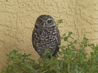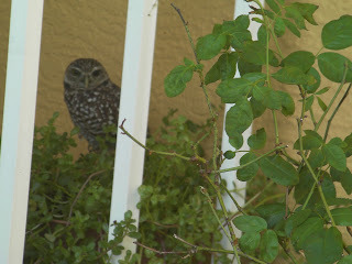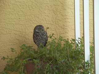 Try as I might, I can't find a way to put a British spin on this post, so I'll just beg your indulgence in order to tell you that my husband and I have recently been blessed by the appearance of a burrowing owl who has taken up residency on our front porch.