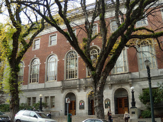 Victoria here, just back from the meetings of The Burney Society and the Jane Austen Society in Portland, OR. We went out a day early in order to take in the Columbia River Gorge. Sadly, it was raining, but not very hard. In fact, it reminded me of most English rain, not quite a mist but not a downpour either. At right is Multnomah Falls, most spectacular of the many waterfalls along the gorge. .