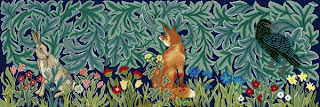 When in London this summer with Victoria, we went to Liberty's, where we ended up in the needlework department and where I discovered the work of designer Beth Russell, who offers many kits, including a series of projects based on scenes adapted from the work of William Morris.