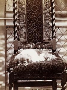 Looty, the first Pekingese dog in Britain, brought by Captain Dunne, 99th Regiment, from Yuanming Yuan, the Summer Palace near Beijing, as a gift for Queen Victoria in April 1861. Dunne had found Looty in the burned out remains of the Summer Palace at Pekin, curled up amongst soft shawls and rugs...