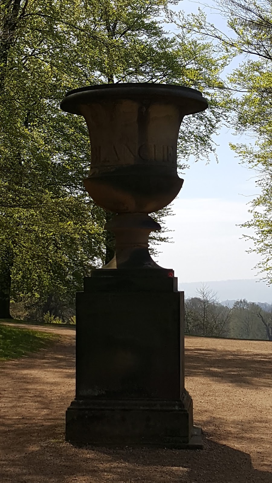 Above and below are photos of Blanche's Vase, on the Long Walk, named for Blanche Georgiana Cavendish, nee Howard, granddaughter of Georgiana, Duchess of Devonshire. Blanche married William Cavendish, 2nd Earl of Burlington, but tragically died at the age of 28 in 1840. Her uncle, the Duke of Devonshire, was left heartbroken by the death of his favorite niece and wrote the following: "There are many things at Chatsworth that I should not have allowed myself to do had I not reposed in the thoughts of being succeeded by a person so indulgent, so much attached to me as Blanche." ('The Garden at Chatsworth' by Deborah, Duchess of Devonshire).