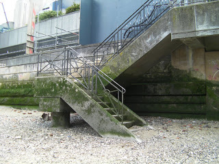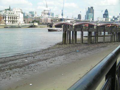 You can see the usual high water mark from the algae line in the photo above. I stood there gazing at this rare view of the River with it's beach exposed, recalling all I'd read about the long ago mudlarks. As I looked at St. Paul's Cathedral on the distant shoreline, my heart skipped a beat as I realized that this was one of those moments I'd remember always - to be able to, for a moment, at a distance of centuries - walk in the mudlark's shoes, to see the River as they'd seen it, to feel, as they must have done, as though I were somewhere I shouldn't be, doing something I shouldn't be doing, but compelled to carry on.