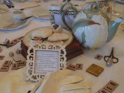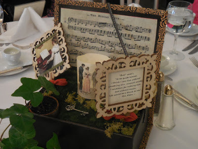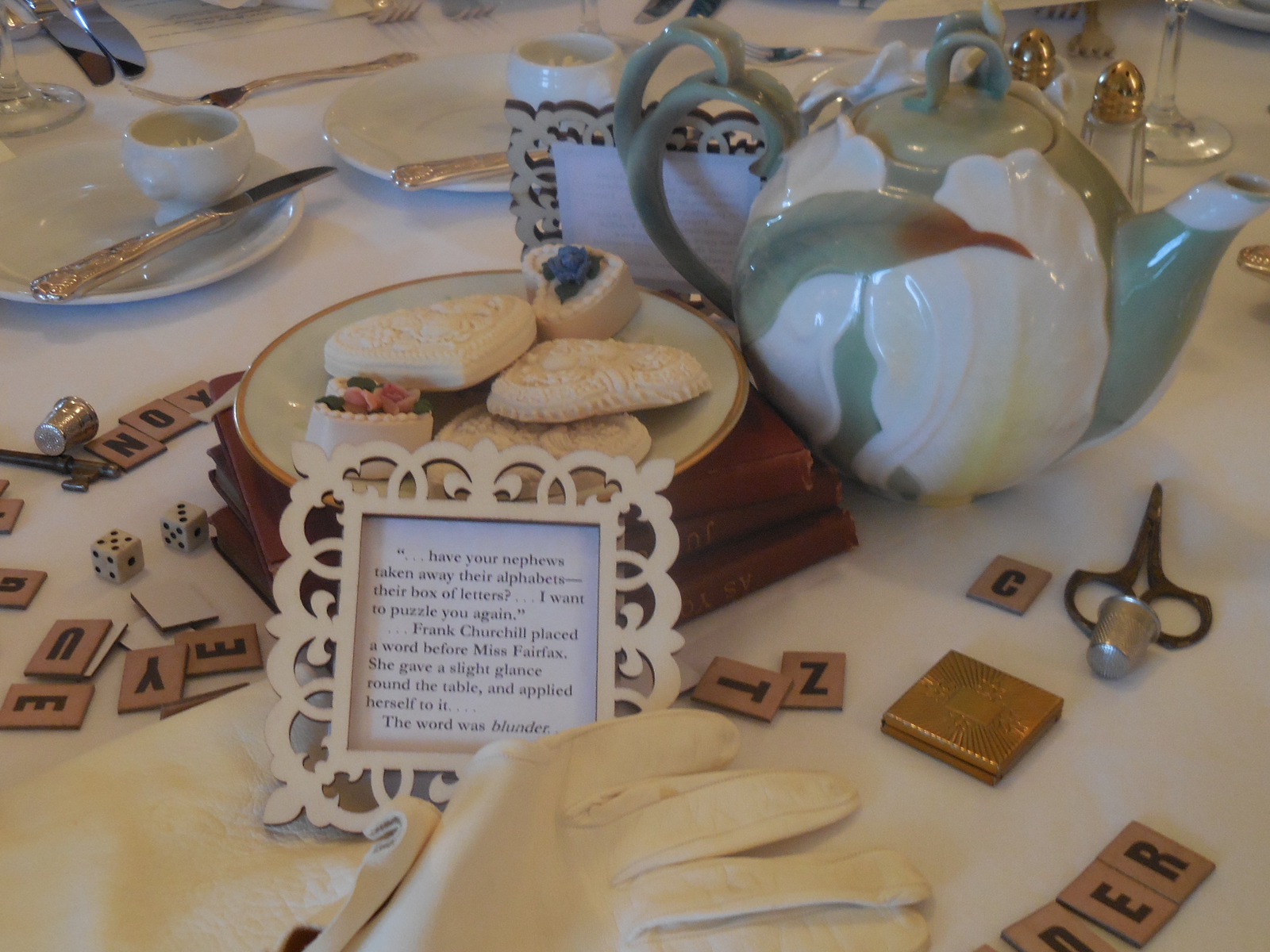 Before luncheon, we all had the opportunity to enjoy the varied and delightful centerpieces on the tables, each representing a scene from Emma and creatively assembled by volunteers. Here is a sampling: