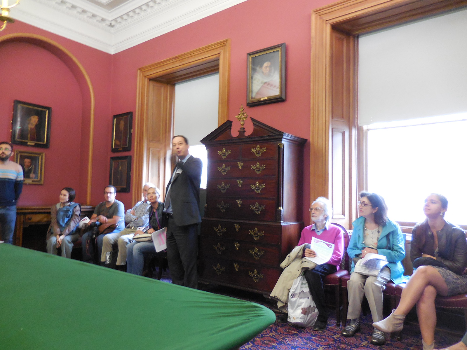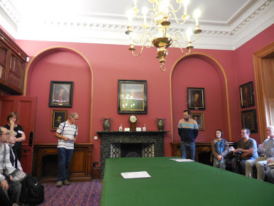 Our next stop along our Open Houses Day route was the Royal Society of Antiquaries, founded in 1707. Today, their 3,000 Fellows include many distinguished archaeologists and art and architectural historians holding positions of responsibility across the cultural heritage. The Fellowship is international in its reach and its interests are inclusive of all aspects of the material past. The Society previously had offices in Somerset House before moving in 1874 to a suite of purpose built apartments in the courtyard of Burlington House, Piccadilly, which offered the Society substantially larger rooms. The Society is also responsible for their Library and Museum collections (at Burlington House and at Kelmscott Manor) and offers conservation and research grant awards, a varied programme of events (lectures and seminars), communications such as publications, a website and e-newsletter.
