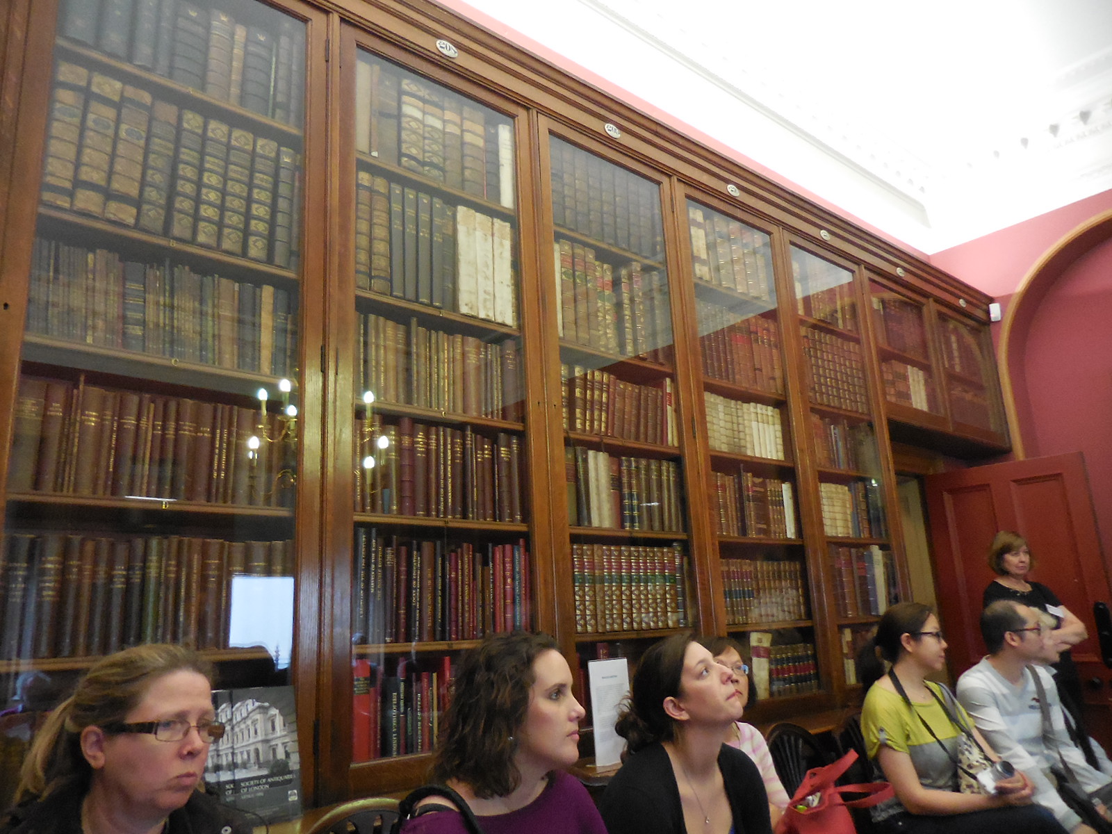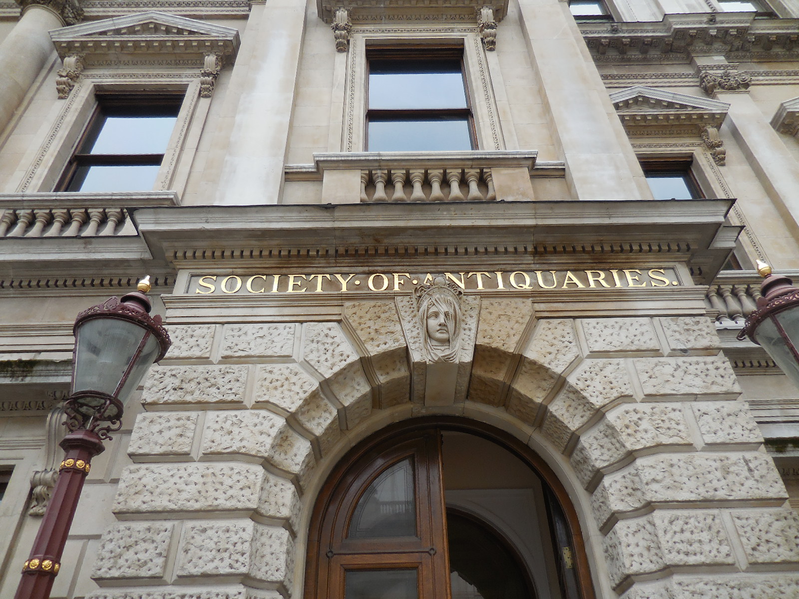 From the Society's website: For 300 years the Library has been at the heart of the Society, helping to shape our understanding of the past. The Library is the largest antiquarian library in the country, with an outstanding collection of more than 130,000 books dating from the fifteenth century to the present day, holdings of historic journals and over 500 current subscriptions, manuscripts and archives, and prints and drawings. It covers British and European archaeology, architectural history, art history and the decorative arts (especially medieval), the historic environment, and British local history. Its collection of county historical and archaeological publications is one of the most comprehensive in the country, as its collection of European journals. Our special collections include 2,000 proclamations from 1464 to the mid-nineteenth century, 1,000 broadsides including a printed indulgence from 1513, the Lowther collection of Civil War tracts, the Fairholt Collection on pageantry, the Prattinton Collection on Worcestershire, the Jackson Collection on Wiltshire, the Willson Collection on Lincolnshire, the archives of the Society of Dilettanti and the Roxburghe Club Library.