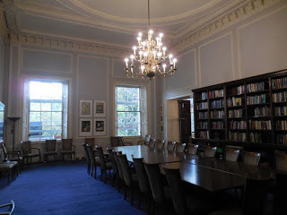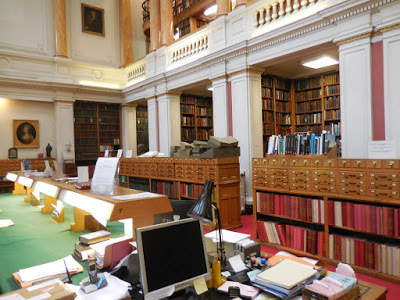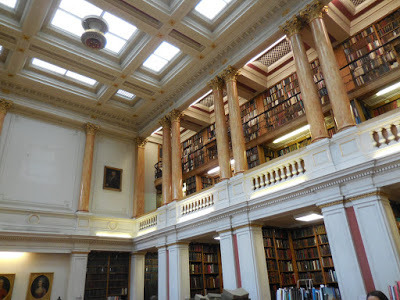 Aaah, the London Library. The Holy Grail of research libraries as far as most historians are concerned. The oh so hard to get into Valhalla of archives. Such is the mystique that has been built up about the Library, one is certain that access into it's hallowed halls is as difficult to attain as a ticket to Almack's had once been. So, when Victoria and I were in London in September over Open Houses Weekend, we put the London Library in St. James's Square at the top of our list. This would be our chance to finally see the inside of this venerable institution. Unfortunately, we didn't know that one had to sign up for the Library tour prior to the date, but the very nice lady at the reception desk invited us to take a seat and to wait for the next tour to start. If the anticipated numbers did not show up, we would be more than welcome to join the group.