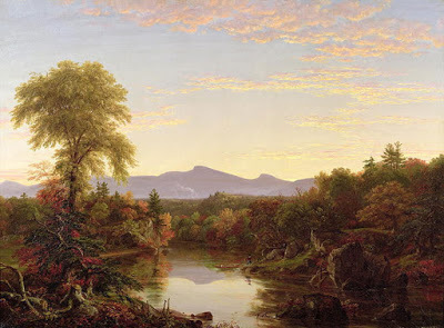 The group of landscape painters in 19th America which became known as the Hudson River School started by painting the lovely wilderness landscapes of the "New World" just west of the Atlantic Coast where the first European settlements grew.