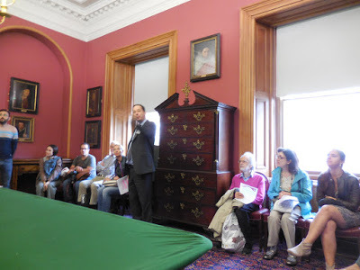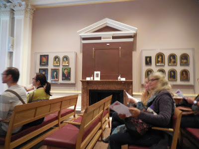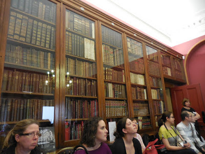 So we waited. And we eagerly eyed all who entered. Surely, we'd see the likes of world famous historians, household name authors and mayhap an Oxford don or two. Not a bit of it - everyone who entered the Library looked quite ordinary. Many of them looked to be students. When a pair of particularly young seeming male students walked by, Victoria whispered, "How do you think they got in here?"