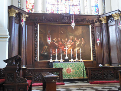 St. George's, Hanover Square, completed in 1725 by architect John James, the Mayfair parish church of many prominent persons such as George Frederick Handel (1685-1759) and the scene of many aristocratic weddings.