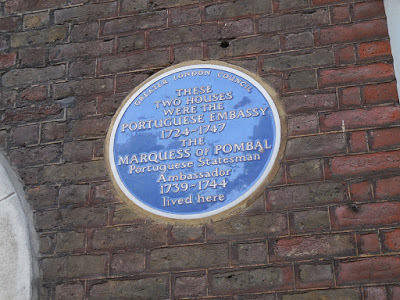 Commemorating the site of the Portuguese Embassy in the 18th C, and its most famous ambassador Marquess of Pombal.