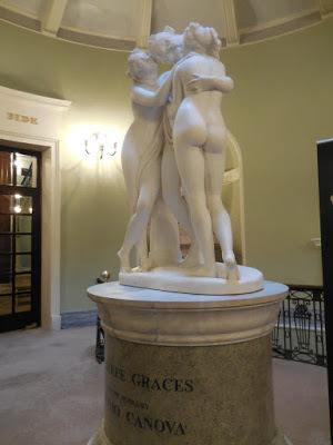 In 2013, Andrew Lloyd Webber purchased this copy of Antonio Canova's famous sculpture "The Three Graces" to stand in the lower rotunda. Restoration of the theatre had returned the decor and colors to their Georgian originals, in keeping with Webber's desire to have it reflect authentic Regency design.