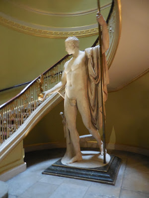 I needed a major social event for the denouement of the book, and I really wanted it to revolve round the anniversary of Waterloo on 18 June. But in 1818, Wellington was still British ambassador to France and based in Paris, though he already had come into possession of Apsley House. The house was designed by Robert Adam and built in the 1770s for the second Earl of Bathurst (who had been Baron Apsley before he succeeded to the earldom). Wellington's brother Richard, Marquess Wellesley, purchased Apsley House in 1807 and engaged James Wyatt to improve it (with the assistance of Thomas Cundy). Though the grateful nation offered to build Wellington a London home, Wellington instead bought Apsley House from his brother in 1817 (to help Richard out of financial difficulties). In 1818 Wellington engaged Benjamin Dean Wyatt, James Wyatt’s son, to make repairs to the house. Wyatt installed the nude statue of Napoleon by Antonio Canova, which Wellington had acquired, at the base of the stairs.