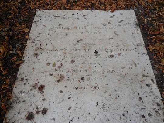 Nearby we found another grave taken care of by an unknown benefactor: the stone marking the resting place of Jane Austen's aunt, Philadelphia Hancock, as well as those of a cousin and the cousin's young son.