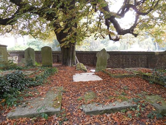 A few of the graves near the church itself were well tended, but the majority of the graveyard was decidedly unkempt - the paths swept, but the stones tilting and leaning in every direction, overgrown with ivy and dead leaves. Certainly picturesque. Here are a few of the photos we took along the way.