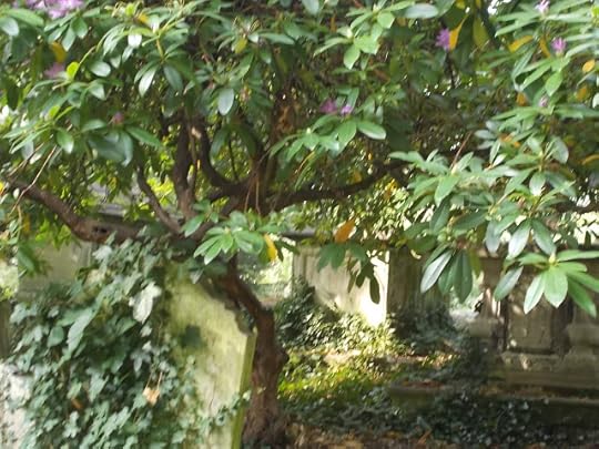 We were surprised to find a local resident and volunteer cleaning the stone and trimming the ivy. She'd brought her equipment and told us she found it unacceptable that the gravesite should be so neglected. We agreed, and the attendant quietly faded away, perhaps chagrined we'd found his duties equally neglected. We loved chatting with the volunteer, a immigrant to Britain in her earlier years. Brava to her! If (when?) we moved to Britain, I would hope Kristine and I would be out there trimming and scrubbing anything that needed attention too.