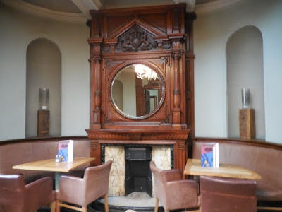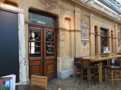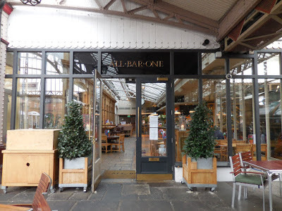 I had long heard it was in the station, but where? That station has been turned into shopping mall -- which we had visited to enthuse over the Jo Malone shop -- a favorite of both of us for special luxurious and fragrant cosmetics, Never saw the Queen's loo. But when I enquired at the station, I was pointed in the direction of All Bar One restaurant at the far end.