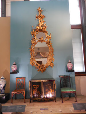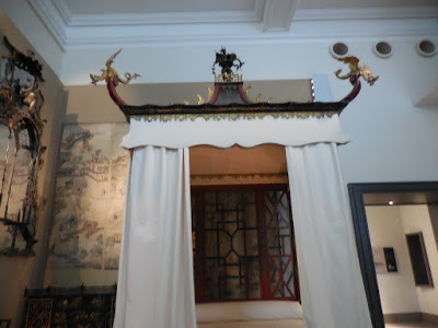 From Badminton House in Gloucestershire, the bed was designed by John Linnell and/or his brother William Linnell, and inspired by Chinese pagodas.The 4th Duke and particularly the Duchess of Beaufort were interested in the new craze for oriental works of art, and commissioned this bed for their home. A Copy of the Linnell bed is now in the house while the original is here in the museum.For pictures of the interior of Badminton House, click here. Scroll down to see the replica of the Badminton Bed.