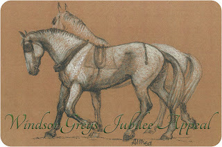 Two Windsor Grey horses, Claudia and Storm, at the Royal Mews in London are available for observation daily. Storm was featured in a statue with another of the type, David. Back in 2012, we ran a post on the drive to raise money to fund the Windsor Greys Jubilee Appeal which was the committe charged with delivering a statue of the horses in time for the Queen's Diamond Jubilee. Really, these horses couldn't be a more fitting symbol to honour Her Majesty, who has such an affinity for horses, and because of their link to Royal traditions.