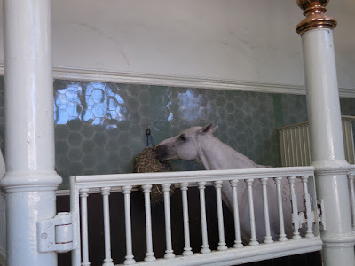Above and below, Stevenson, one of the horses who are regularly used on the Royal carriages in his stall at the Royal Mews. Victoria snapped these photos while we were there for the Duke of Wellington Tour.