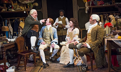 Foote, a man who became tabloid fodder and a celebrity who would have put The Kardashians to shame (his life bumped the American Revolution off the front page of British newspapers in 1776), Foote is brought to uproarious life by the incomparable British actor, Simon Russell Beale. When I spoke to Beale backstage after the show, he confided he hasn't performed on our shores in a decade and would like to return. Based on the enormity of his talent and his perfect comedic timing, don’t be surprised if he becomes a household name here in the States soon. Broadway must be calling him. He is a marvel to watch.