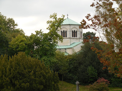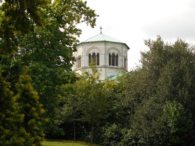 After our tour of the interior, we wandered around the grounds, with a lovely lake, several follies, and nearby though closed to visitors, two mausoleums (mausolea?), one for Queen Victoria's mother and the other for Victoria and her adored Albert.