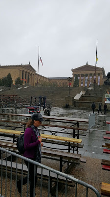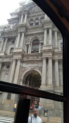 So, Hubby and I arrived in Philly, with the suit, and the next day - the day of the dinner - turned out to be a rainy one. We'd planned on doing a few museums and walking the City, but now had to regroup. It occurred to me that Philly, like most larger cities, might have a Big Bus Tour. The doorman at hotel confirmed that this was so and even arranged for the tour operator to send a courtesy van to pick us up at the hotel and deliver us back after the tour. We were able to see the sights in comfort and warmth.