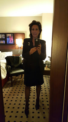 "Do you think?" I asked. "I feel like I should either be holding menues and asking 'how many in your party?' or standing at the front of an airline cabin pointing out the emergency exits. Business formal, indeed."