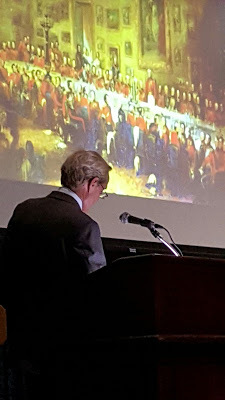 So, after drinks in the hotel bar, Hubby and I headed outside the hotel to get a cab. None to be had, we were told by the doorman. Huh? Apparently, Philly cabs were overloaded due to the rain. Huh? It rains in London. It rains in Manhattan. There are still cabs. We had fifteen minutes to get to the Union League. Long minutes ticked by with no cabs in sight. I could not believe that I was going to be late for a lecture I'd waited months to attend because of rain. The words "a horse, a horse, my kingdom for a horse" ran through my mind, but I didn't think Hubby would appreciate the similarity.