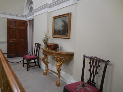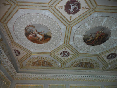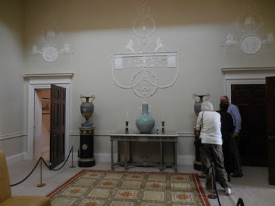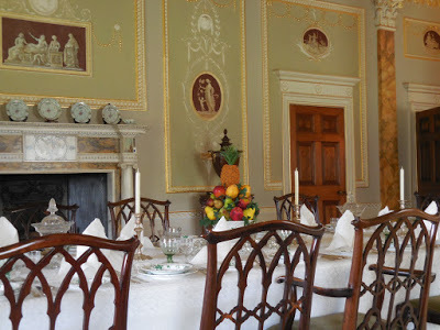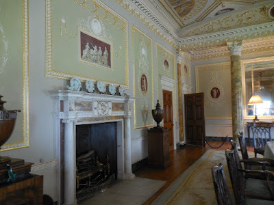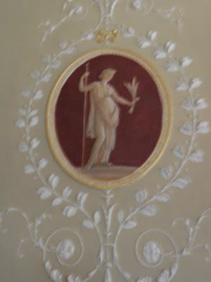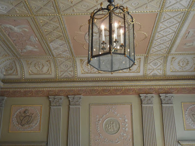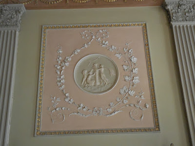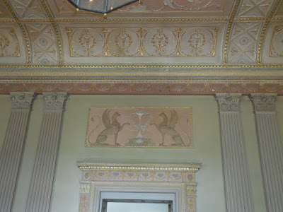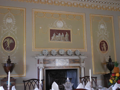 In the dining room, more influences of the Adam Brothers are found in the wall decoration.