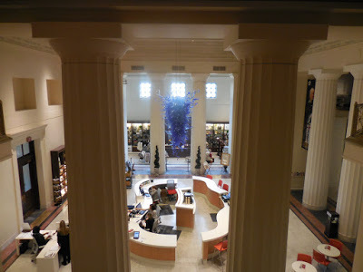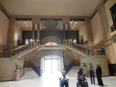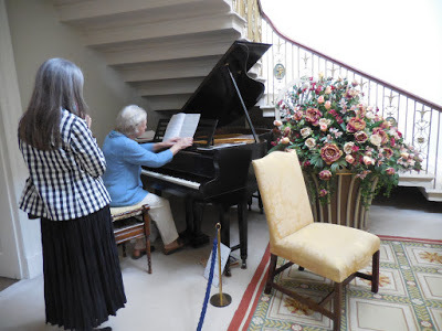 In the center of the house is the grand staircase, and Donna is shown admiring the piano and pianist who entertained us as we roamed the rooms.