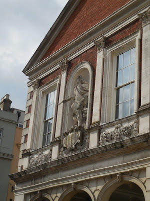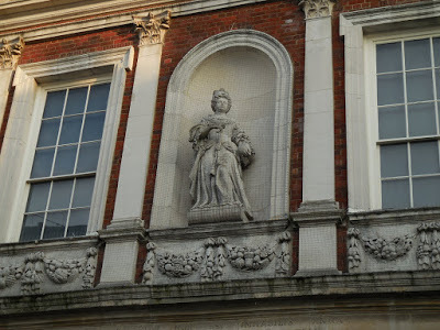 Side view of the Guildhall with statue of George of Denmark, Queen Anne's consort