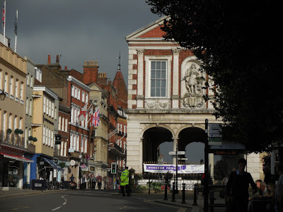Our group stayed at the Castle Hotel, above, where Victoria and I had both stayed before and which is a personal favourite. The hotel is directly across from some of Windsor's landmarks, including the Guildhall, below, and the Crooked House.