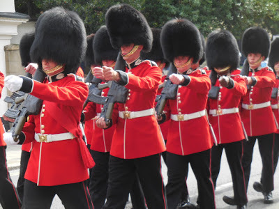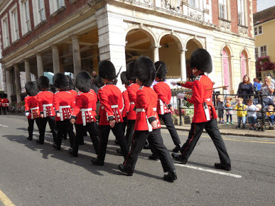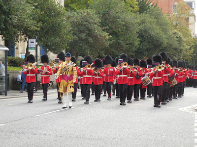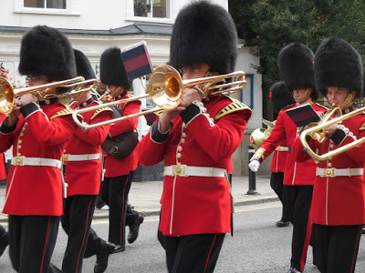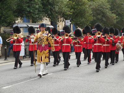 Our table afforded us a birdseye view of the Town, but unfortunately we didn't get a glimpse of the Guard's Band that day - these photos were taken a few days later by Victoria during our extended stay after the conclusion of the Tour.