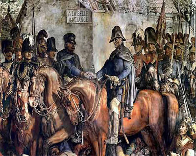 Late in the evening after the battle, Blücher and Wellington met at the inn La Belle Alliance and shook hands. In a great ironic twist, the two victorious generals spoke in the language of their enemy – the only language they both knew was French, though Blücher supposedly only knew a few words: “Mon Dieu, quelle affaire!”