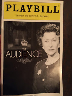 "Snapshots from The Queen," you might call it; in this case, it is more like a scrapbook. "The Queen" was set in one year of Elizabeth's reign, 1997, when she was dealing with the death of Princess Diana; Morgan's The Audience centers on sixty years-worth of Elizabeth's weekly audiences with her Prime Ministers (eight of whom are represented, starting with Winston Churchill and ending with the current David Cameron). And there's the rub. While most theatergoers are likely to be thrilled byThe Audience--or more precisely, by Mirren's performance in The Audience--the concept dictates that we will be seeing pages from a scrapbook, without the dramatic heft that would make it a fine and/or important play.